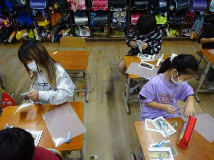 図工の「小さな自分のお気に入り」では,たくさん撮った写真を小さく印刷し,その写真を切りました!