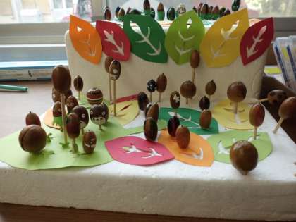 学校の中や校区内を探検してみつけた秋の宝ものを使って