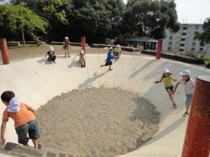 スケールの大きな遊具に大喜びの子どもたちは、スタートからゴールまで、何度も繰り返し遊んでいました。