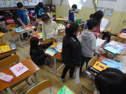図画工作の時間に,これまで作った作品を鑑賞しました!