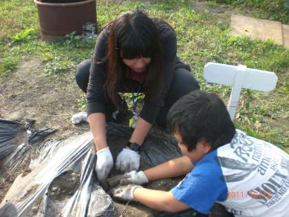 地域の方に協力していただきながら,6月から育て始めたふれあい農園のさつまいもを収穫しました。