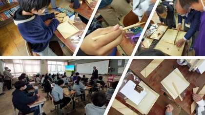 講師の方々の「のこぎりさばき」が見事で子どもたちは感心していました。