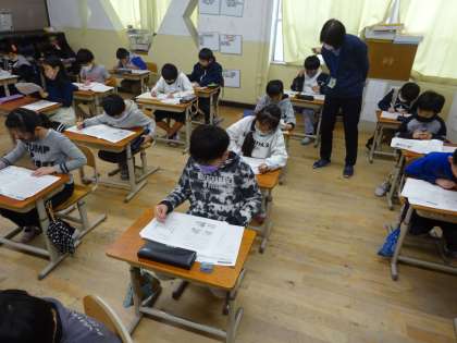 いつものテストとは違い,難しい問題が多かったり,問題を読むのに時間がかかったりして,制限時間内に終わらない子がほとんどでした。