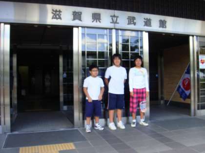 そんなことを言いながら,滋賀県の武道センターへ,京都代表の12名みんなで行きました。そのうち池田小学校からは3名出場しました。