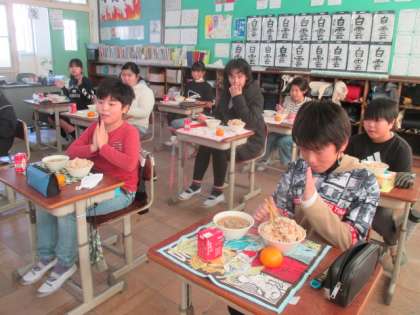 いつもおいしいご飯を作ってくれている給食調理員さんに感謝して,今日も「いただきます!」