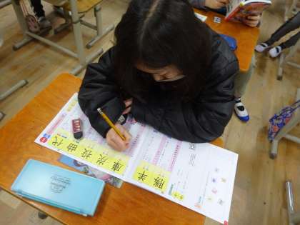 3学期に習う漢字を学習し始めました!新しいドリルに変わって,みんな心機一転丁寧に字を書いていました!