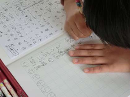 子どもたちは集中して、2年生のときよりも少し小さめのマスになったノートに丁寧に漢字を書いていました。