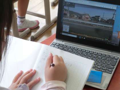 東西南北の確認をしたあとに,学校の周りの様子を地図で見ました。