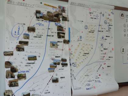 先日校区を歩いてみつけた校区の建物やお店などをひとりひとり地図記号を使ってまとめました。
