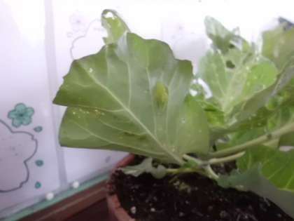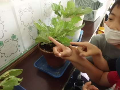 教室でモンシロチョウの産み付けた卵から,幼虫を育てています。