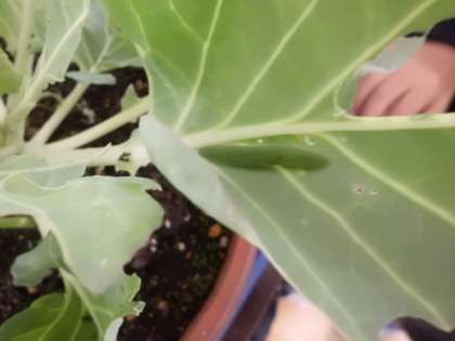 キャベツの葉が芯だけになるほど食べつくしてよく育っています。