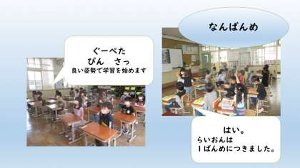 前から・後ろから・上から・下から・左から・右からということばを使って教科書にのっている動物や鳥が何番目にいるのか問題を出し合って楽しみました。