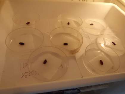 「水を与えるものと与えないもの」「空気に触れているものと水に沈めて全く空気に触れないもの」「箱の中と冷蔵庫の中」とで発芽に違いが出るのか予想をたてました。