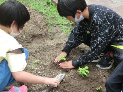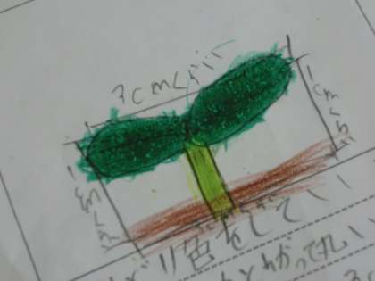 観察するときは,色や形,大きさ,手触りなど見たり触ったりして詳しくカードに記録しています。