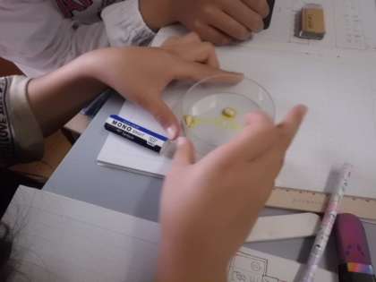 子葉の切り口にヨウ素液をつけると,黒っぽく色が変わったので,種子の中にはでんぷんがあることが分かりました。