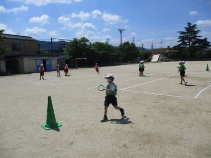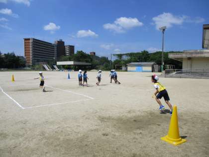 たくさん練習をして慣れてきたので,バトンをつないで競走するリレーをしています。
