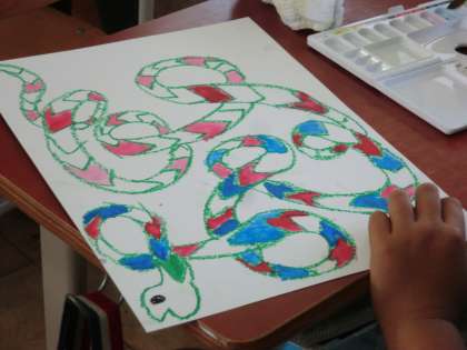 カラフルヘビの学習では,いろんな色をバランスよく配色することを考えて取り組んでいます。
