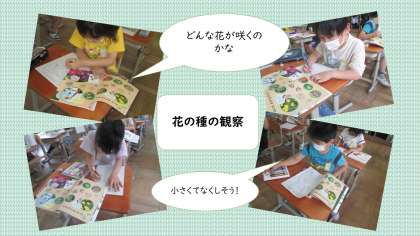 その後,どんな花が咲くのか知りたくなり,生活科の教科書で調べていました。