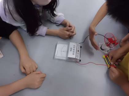 今日は,簡易検流計を使って,電池の向きを変えると電流の向きが変わるのかを確かめました。