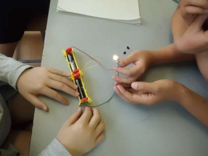 明るく光って,モーターと同じように,乾電池1個の時と2個とでは力が違うと気が付きました。