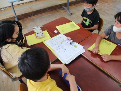 国語科で学習している「たんぽぽのちえ」の学習のまとめとして,たんぽぽが成長する過程をすごろくにして楽しみました。