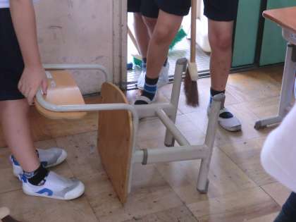 ほうきの担当,机を運ぶ担当が協力し合って手際よく進めていきます。