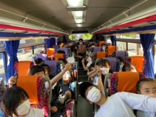 バスに乗り込み,ここから2時間ほどで,師崎港に到着する予定です。
