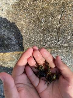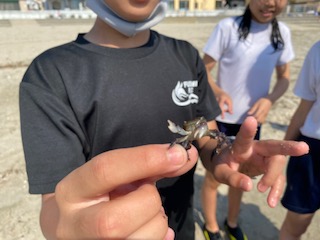 ワカメや貝殻,生きている貝など,いろいろな物を拾ってきて見せてくれます。
