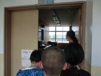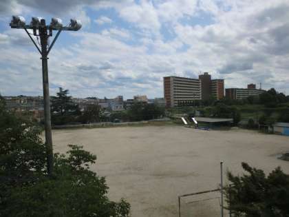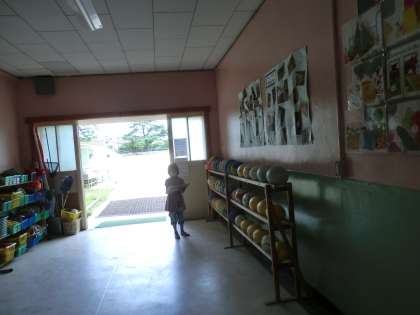 エントランスには水槽がずらっと並び,3階に行くと見晴らしがよい池田小学校。