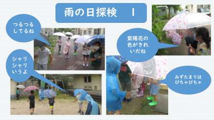 雨が降ったので,雨降り探検をしました。