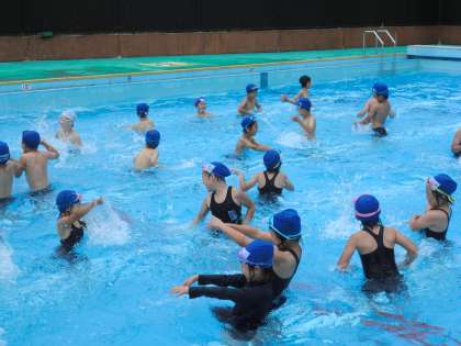 友だちとの「水中じゃんけん」や「水のかけあい」では,とっても楽しそうな姿が見られました。