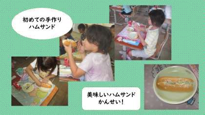 今日の給食は,初めての手作りハムサンドでした。