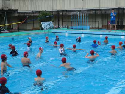 プールを横に区切ってどんどん泳げるコースと短い距離ではあるけれど泳ぎを上達していくためのコースに分けてたくさん練習する時間を取っています。