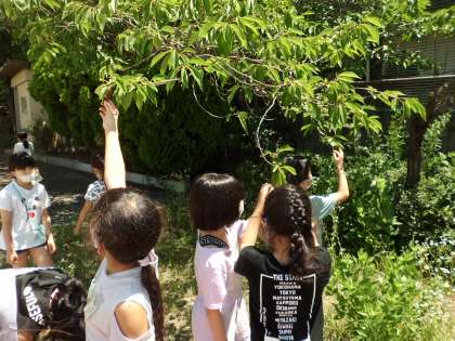 今日は,桜をみて,葉がたくさん茂っていることや葉の色が濃いことを見つけました。