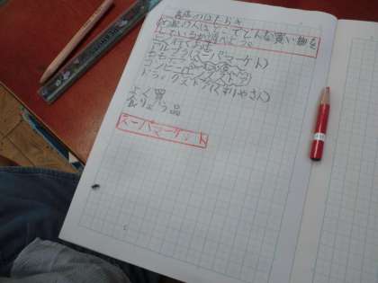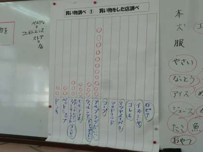 今日は、先週からの「買い物調べ」をもとにみんなのお家ではどんな店で買い物をしていることが多いのかを話し合いました。