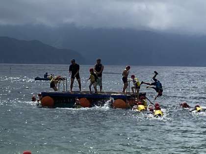 ジャンプ台から走って飛び込んだり、前転して飛び込んだり…