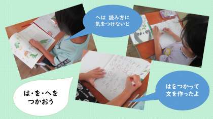 ひらがなの学習が終わったので、簡単な文を作る練習を始めています。