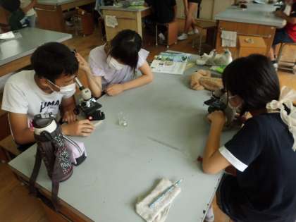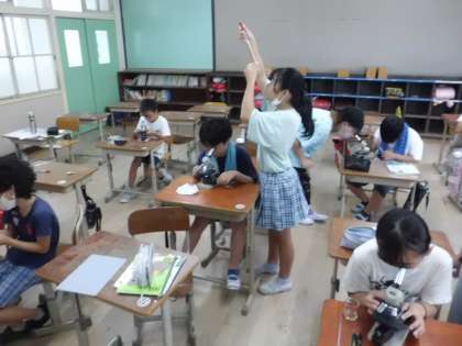 メダカなどの魚が食べる、水の中の小さな生き物を観察しました。