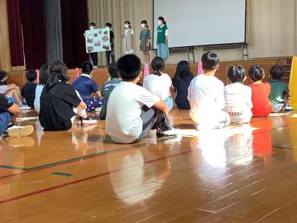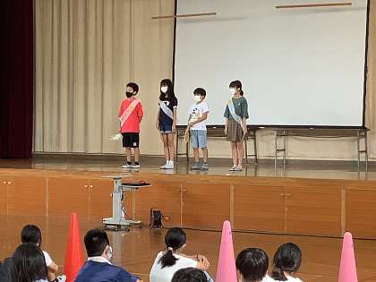 「世界が一つになるまで」の歌を全校で合唱をしたり、学年や委員会からの発表を聞いたりしました。