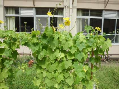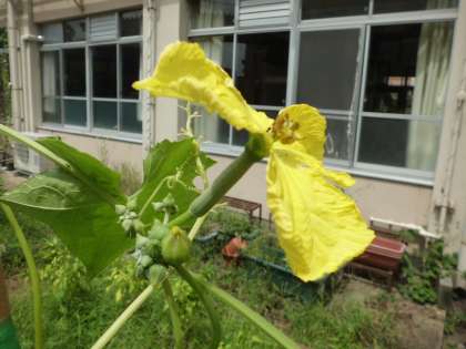 夏休みの間、ヘチマは順調に育ち、お花をたくさん咲かせています。