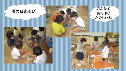 と、大好きな本を借りに図書館へ行った後は、教室で「雨の日あそびのおもちゃ」で遊びました。