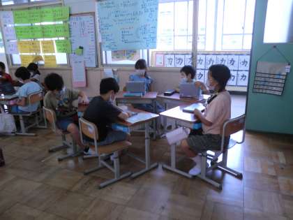 テーマに沿って条件を満たした話し合いの練習をしています。