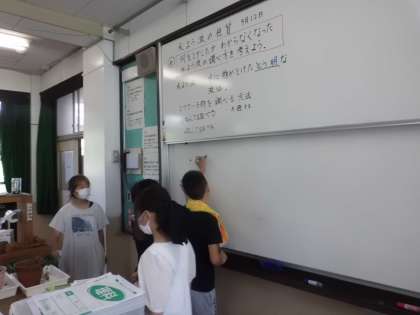 どのようにすれば、何が溶けているかを調べられるかを話し合いました。