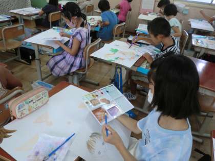 短いお話でしたが、みんなで言葉のイメージスケッチをして、どんな場面があったかを思い出し、そこからイメージしたものや風景を描いています。