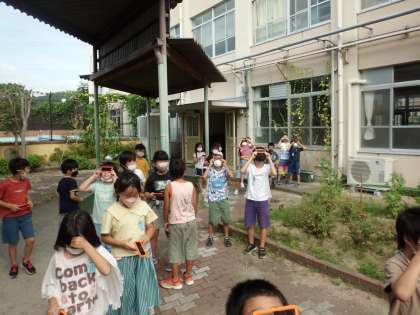 影ふみ遊びをして、影ができる向きが太陽の向きと関係があることに気づいた人がいたので、遮光板を使って観察しました。