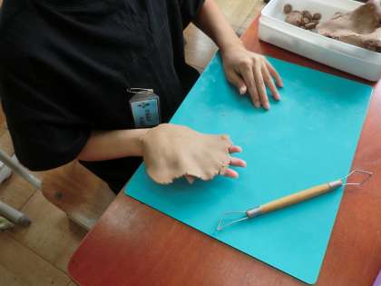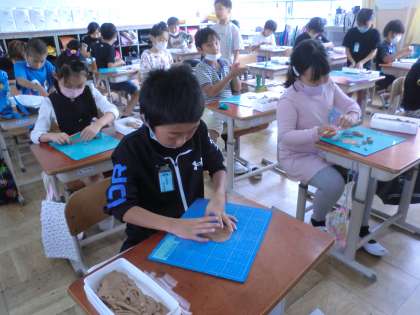 八ツ橋の作り方を予想しながら、粘土で作ってみました。