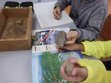 川の上流と下流とで、石の特徴がちがうことを観察しました。