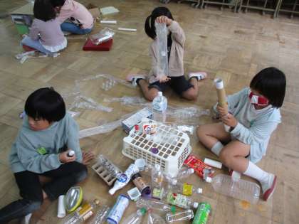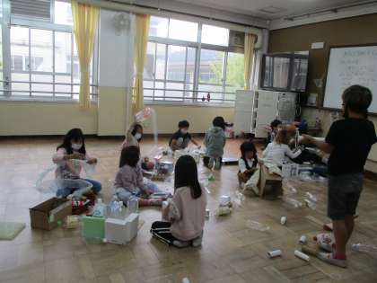 ペットボトルやお菓子の空き箱、卵の容器など様々なものが集まりました。
