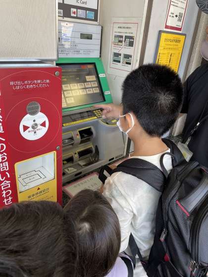 自分の力で券売機にお金を入れて、切符を買いました。