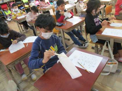 栄養教諭の深尾先生に来ていただき、「お箸の持ち方」についてお話していただきました。